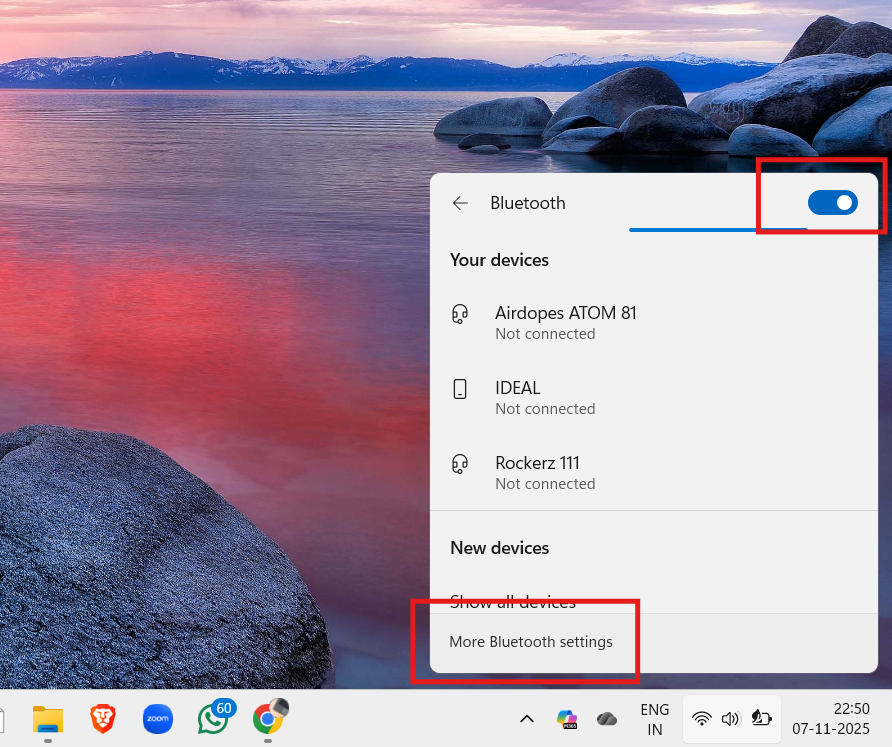 4. Klik met de rechtermuisknop op de tegel en kies Meer Bluetooth-instellingen om een apparaat te koppelen.