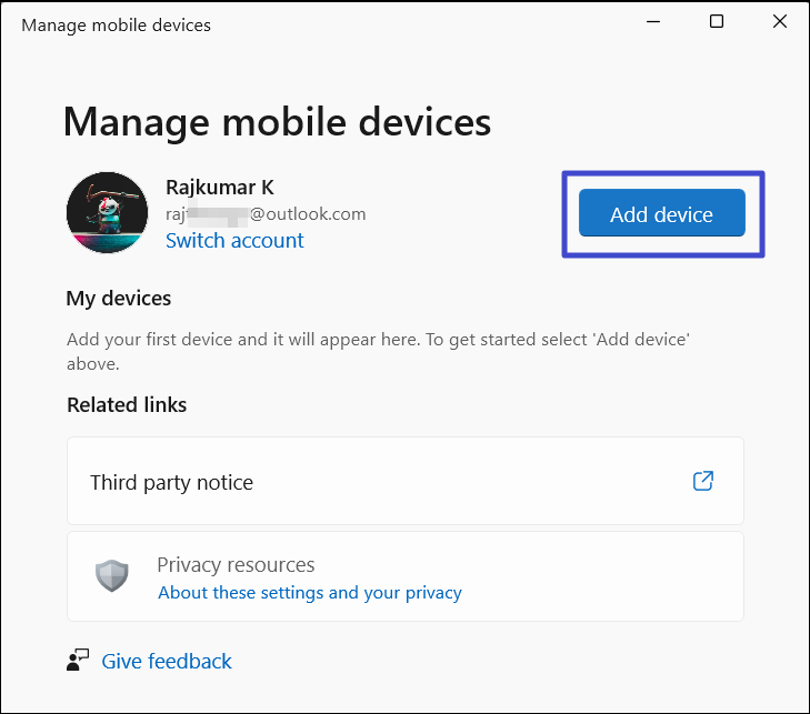 6. Gebruik vervolgens de QR-code om de “Koppeling met Windows'-app op uw mobiele apparaat en zorg ervoor dat u bent aangemeld bij hetzelfde Microsoft-account als dat op uw computer.