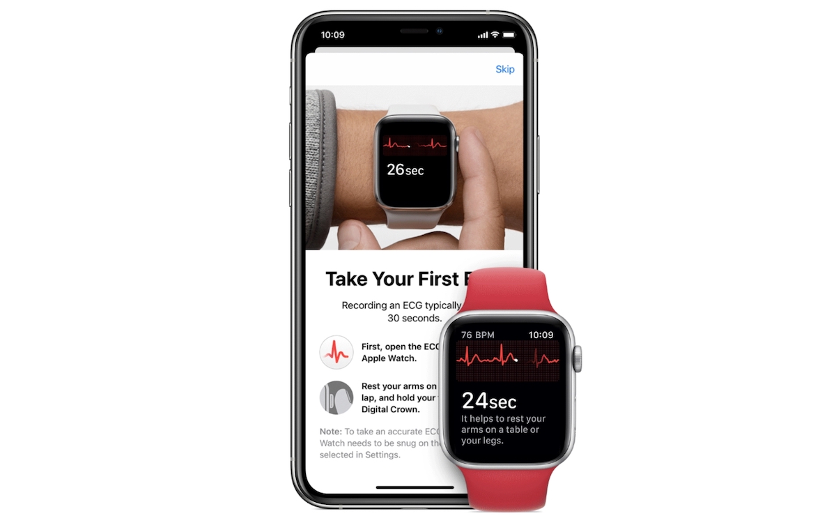 Apple heeft de ECG-app geïntroduceerd waarmee gebruikers overal en altijd een elektrocardiogram (ECG) kunnen maken om de gezondheid van hun hart te volgen. De gezondheidsapp registreert de timing en sterkte van de elektrische signalen die de hartslag veroorzaken en waarschuwt de gebruiker als hij een afwijking zoals atriale fibrillatie (AFib), een vorm van onregelmatig ritme, detecteert.