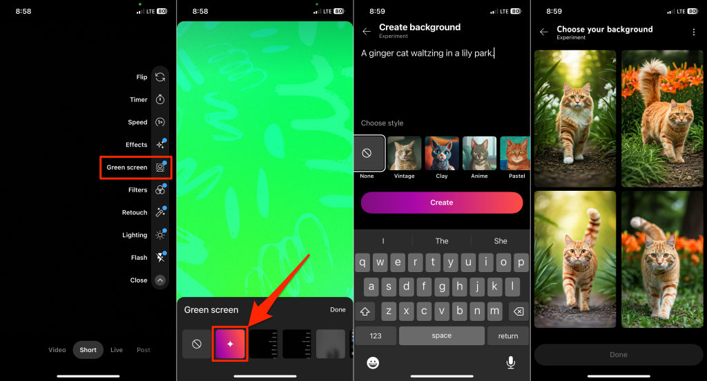 Makers hoeven alleen een tekstprompt in te voeren en een visuele stijl te kiezen. Afhankelijk van de vraag genereert Dream Screen meerdere concepten die kunnen worden gebruikt als afbeelding of video-achtergrond voor YouTube Shorts-video's. Het is een eenvoudig en relatief snel proces. Zie ditYouTube Help-artikelvoor stapsgewijze instructies.