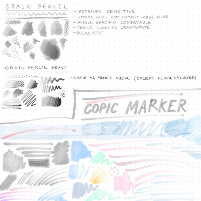 Ik ben dol op deze eenvoudige penselenset omdat de potloodopties zo dicht bij het echte werk komen. Ik gebruik deze voor basisschetsen en soms zelfs voor letters.