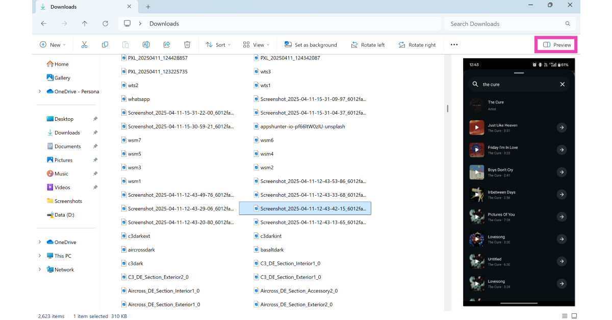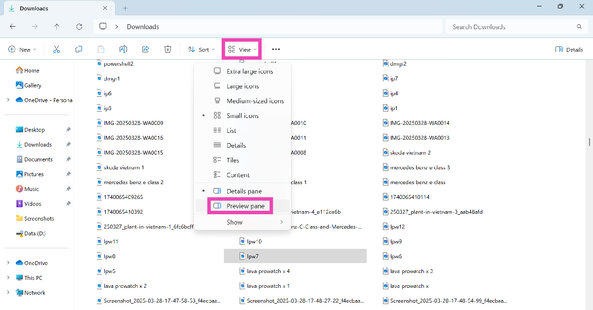Ga naar Verkenner, klik op ‘Bekijken’ en selecteer ‘Voorbeeldvenster’. Klik op een bestand en klik op de knop Voorbeeld onder de zoekbalk om er een voorbeeld van te bekijken.