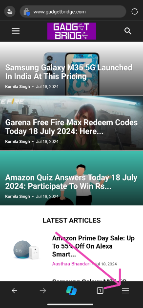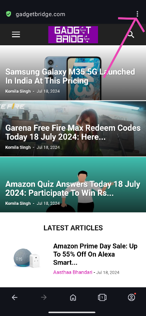 Stap 1: Launchde Microsoft Edge-browser op uw Android-telefoon en open eenwebsite.