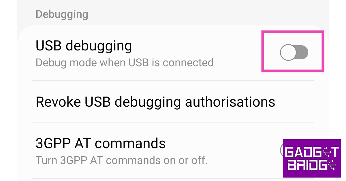 Stap 5:Scroll naar beneden naar deFoutopsporingsectie en schakel de schakelbalk in voorUSB-foutopsporing.