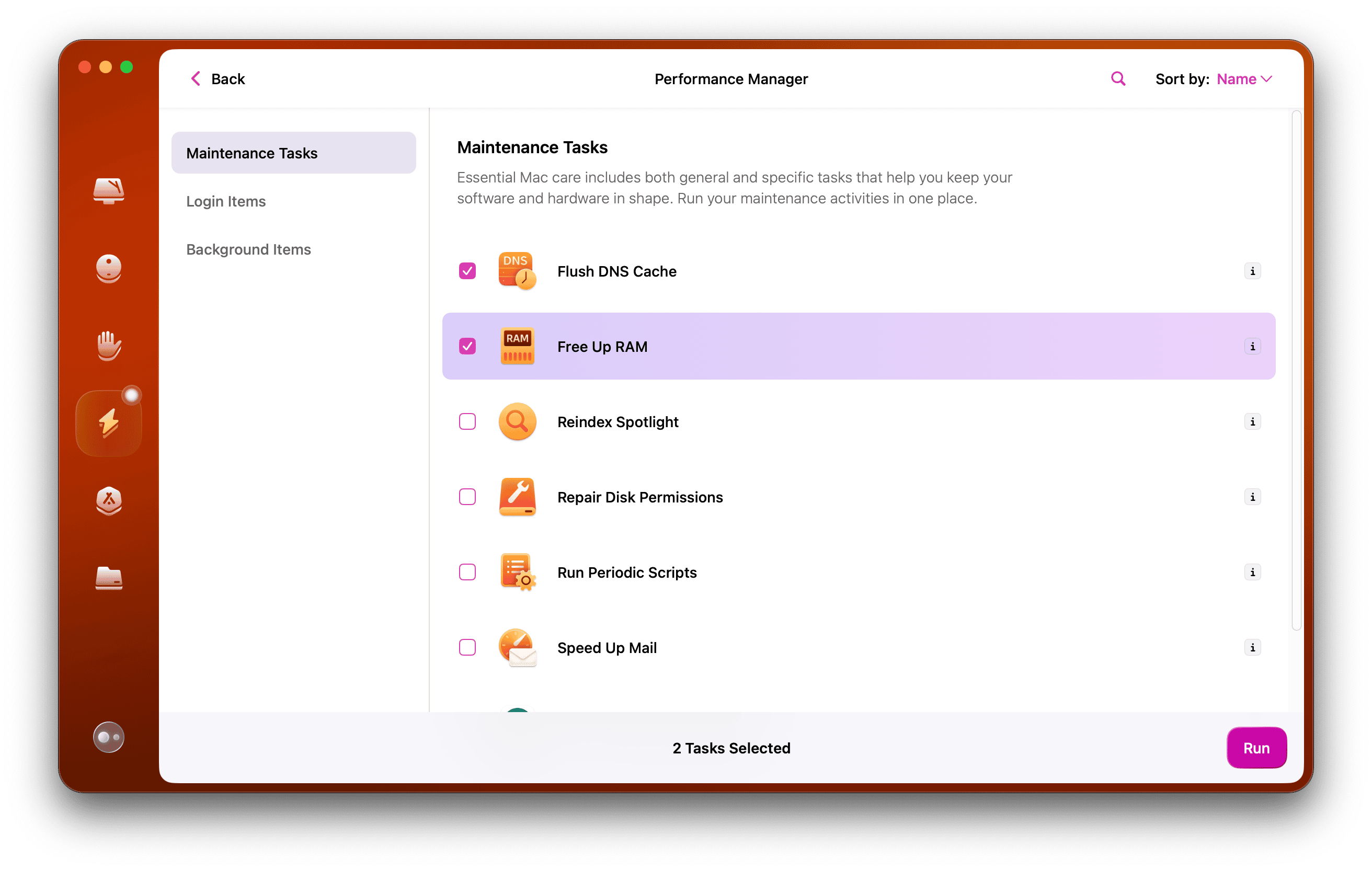 - Open CleanMyMac en klik op Onderhoud in de zijbalk.