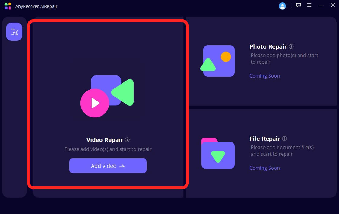 Stap 2.Selecteer de “Videoreparatie' sectie of de 'Video toevoegen'-knop in de hoofdinterface.