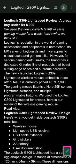 Stap 1:Launchde Google Documenten-app op uw telefoon en open een document.