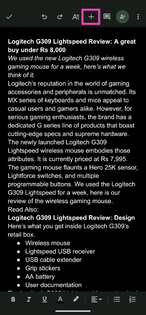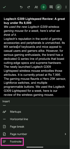 Voetnoten toevoegen in Google Documenten (mobiel)