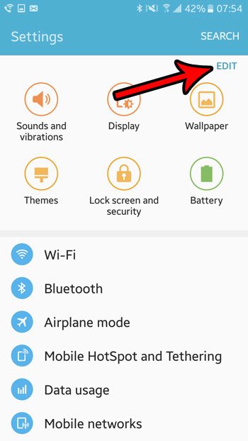 De stappen in dit artikel zijn uitgevoerd op een Samsung Galaxy On5 met het Android Marshmallow-besturingssysteem. Deze stappen gaan de reeks pictogrammen wijzigen die bovenaan het menu Instellingen worden weergegeven. In dat gedeelte van het menu kunt u maximaal negen verschillende opties hebben.