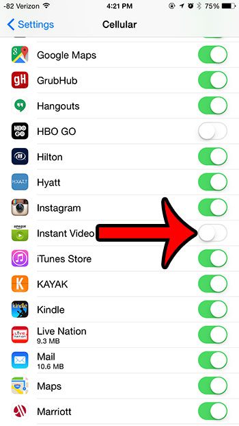 Eén zo'n app is de Instant Video-app van Amazon, en misschien wil je de instellingen voor die app wijzigen zodat deze je mobiele gegevens niet kan gebruiken. U kunt de onderstaande tutorial volgen om te leren hoe u deze wijziging kunt aanbrengen.