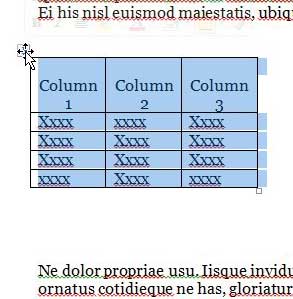 Stap 2: Beweeg uw muis over de tafel totdat u een klein vierkantje ziet verschijnen in de linkerbovenhoek van de tabel.