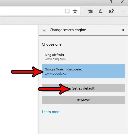 Stap 6: Selecteer de zoekmachine die u wilt gebruiken en klik vervolgens opAls standaard instellenknop.