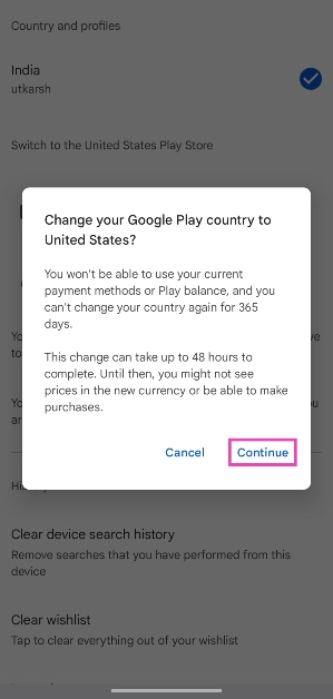 Stap 5:Tik op de betaalmethode onder de ‘Schakel over naar [land] Play Store‘categorie.