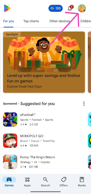 Stap 2:Lanceer deop uw smartphone en tik op uwprofiel fotoin de rechterbovenhoek van het scherm.