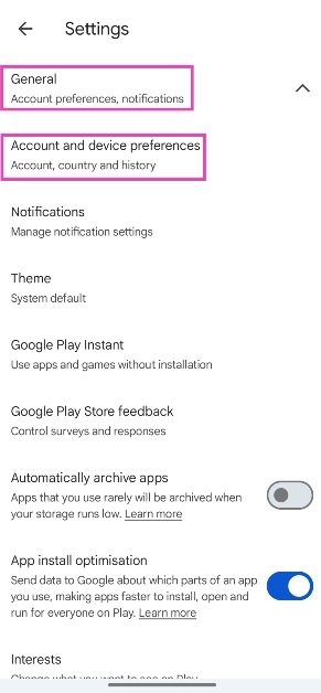Stap 4:Tik opAlgemeenen selecteerAccount- en apparaatvoorkeuren.