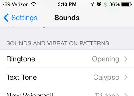 Stap 3: Scroll naar beneden en raak de aanBeltoonoptie in deGeluiden en trillingspatronengedeelte van het menu.