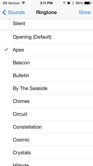 Stap 4: Selecteer een beltoonoptie. Houd er rekening mee dat er een kort fragment van de toon wordt afgespeeld wanneer u een nieuwe optie selecteert.