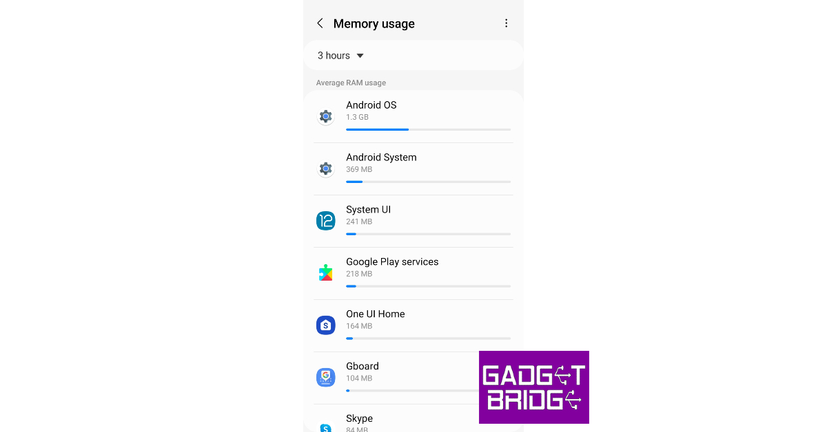 Stap 6:Om de app-gewijze uitsplitsing te bekijken, tikt u opGeheugengebruik.