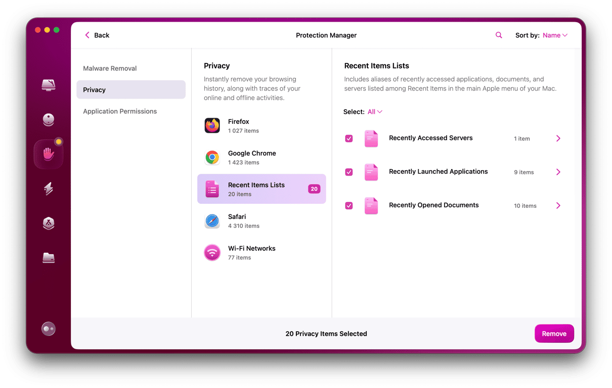 De klembordgeschiedenis van uw Mac is niet het enige onderdeel van het systeem dat uw privacy in gevaar kan brengen. De lijst met recente items in de Finder, uw browsergeschiedenis, downloadgeschiedenis en recente zoekopdrachten kunnen ook nuttig zijn voor iedereen die toegang heeft gekregen tot uw Mac en inbreuk wil maken op uw privacy. En het zijn niet alleen mensen die fysiek toegang hebben tot uw Mac die toegang hebben tot privégegevens. Applicaties kunnen het doen en die gegevens verzamelen of delen. Daarom staat macOS geen enkele app toe toegang te krijgen tot uw bureaublad- en documentenmappen, uw scherm op te nemen of uw camera of microfoon te gebruiken zonder uw uitdrukkelijke toestemming. Maar als u die toestemming eenmaal heeft verleend, hoe kunt u deze dan eenvoudig weer intrekken? Hoe wist u uw lijst met recente items en verwijdert u alle privégegevens die webbrowsers op uw Mac opslaan? En hoe zit het met de lijst met Wi-Fi-netwerken die uw Mac opslaat? Hoe maak je dat duidelijk? De eenvoudigste oplossing, en degene die wij aanbevelen, is om de Privacy-module in CleanMyMac te gebruiken. Het kan al deze dingen snel en gemakkelijk doen. Het enige dat nodig is, is een paar klikken, en het is klaar. U kunt CleanMyMac hier gratis downloaden en zelf uitproberen.
