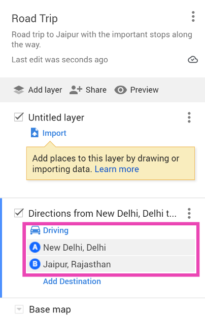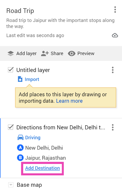 Stap 8:Je kunt ook doorklikkenBestemming toevoegenin het lagenvak en voeg een locatie toe aan uw kaart.