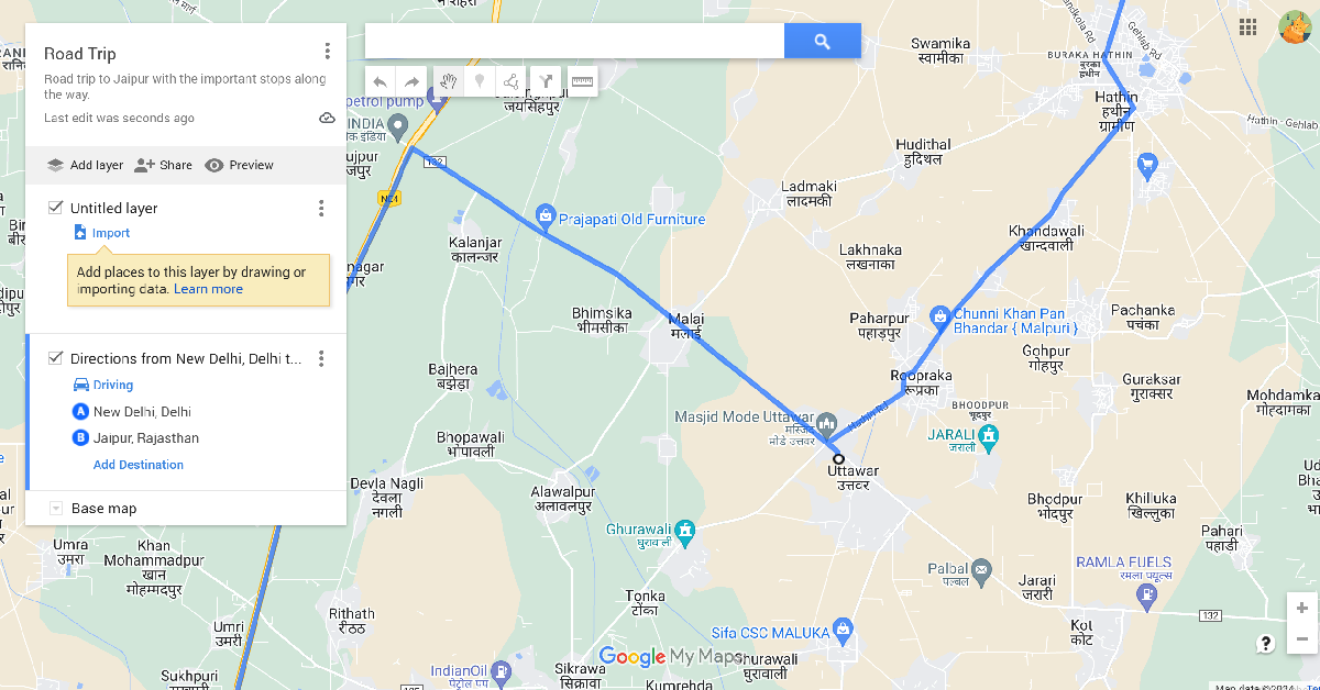 My Maps kan alleen op een pc worden gemaakt en bewerkt. Ze kunnen offline worden opgeslagen en gedeeld met andere gebruikers. U kunt ook een ‘Mijn kaart’ op uw website insluiten. Met de diverse aanpassingsopties in My Maps kunt u specifieke locaties markeren, de route wijzigen, tekst, video's, afbeeldingen toevoegen en meer.