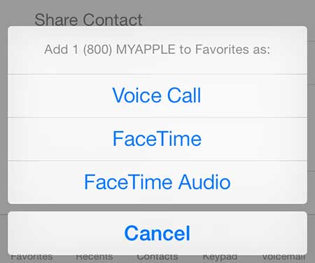 Stap 6: Selecteer de contactoptie die u aan uw favorieten wilt toevoegen voor het geselecteerde telefoonnummer of e-mailadres.