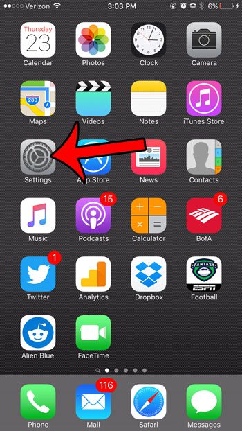 Lees hieronder verder voor aanvullende informatie, evenals afbeeldingen voor elk van deze stappen. Onderaan dit gedeelte wordt ook besproken hoe u een e-mailaccount kunt verwijderen van een iPhone 6 in eerdere versies van iOS.