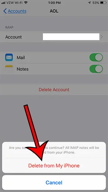 Zodra u deze stappen voor het verwijderen van het e-mailaccount van uw iPhone heeft voltooid, ontvangt u geen nieuwe berichten meer, kunt u geen nieuwe berichten meer verzenden vanaf dat account, heeft u geen toegang tot de contacten die aan dat account zijn gekoppeld, wordt uw gekoppelde agenda verwijderd en heeft u geen toegang meer tot notities die aan dat account zijn gekoppeld.