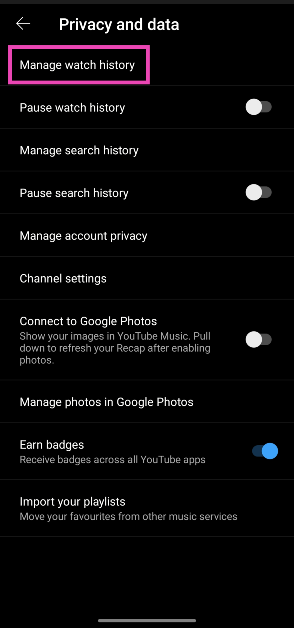 Start de YouTube Music-app, tik op je profielfoto, ga naar ‘Kijkgeschiedenis beheren’ en tik opVerwijderen>Altijd verwijderen.