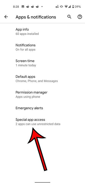 Stap 5: SelecteerSpeciale app-toegang.