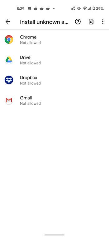 - KiezenInstalleer onbekende apps.