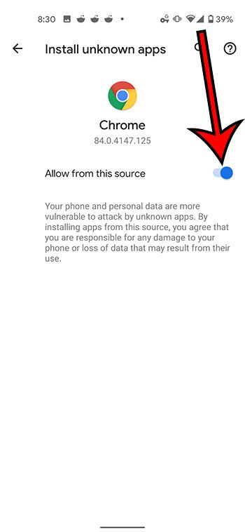 Ons artikel gaat hieronder verder met aanvullende informatie over het installeren van apps van onbekende bronnen op een Pixel 4A, inclusief afbeeldingen van deze stappen.