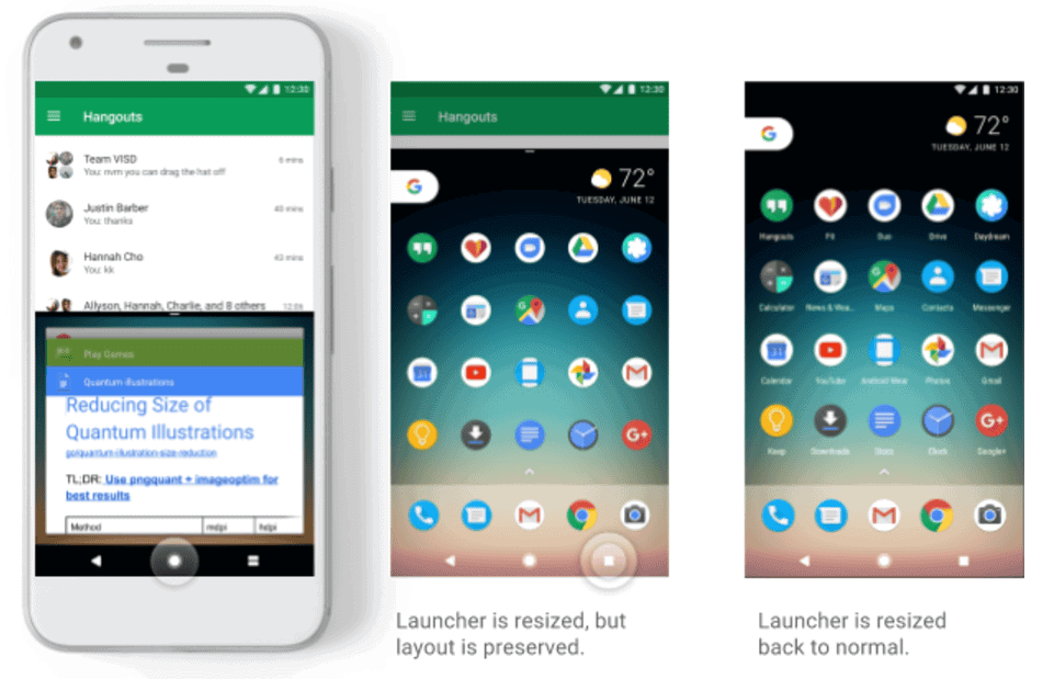 - Formaat van vensters wijzigen:Pas de grootte van elk app-venster aan door de scheidingslijn ertussen te slepen.