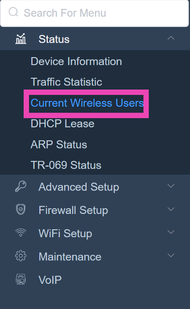 Stap 3:Klik opHuidige draadloze gebruikersonderApparaatinformatie.