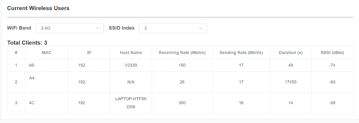 Stap 4:De lijst met apparatenverbonden met uw WiFi-netwerkzal op het scherm verschijnen.