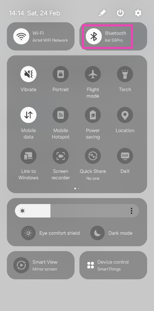 Stap 1:Veeg vanaf de statusbalk omlaag en houd de knop lang ingedruktBluetooth-tegelin het menu Snelle instellingen.