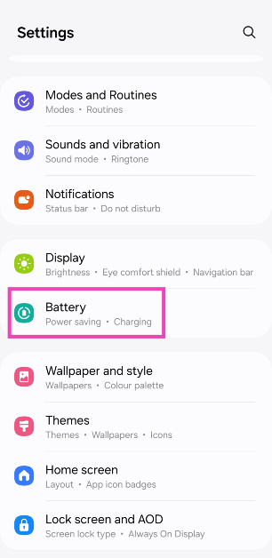 Stap 1:Ga naarInstellingenen selecteerBatterij.