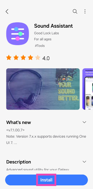 Stap 1: DownloadenEninstallerendeGeluidsassistent-appuit de Galaxy-winkel.