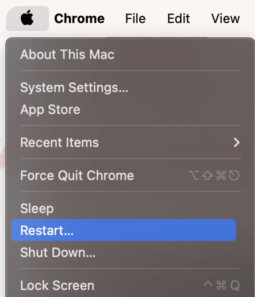 Als Core Services UI Agent vastloopt omdat de toepassing die u probeert te openen problemen heeft met de CPU of de cache, kan het opnieuw opstarten van uw Mac het probleem helpen oplossen.