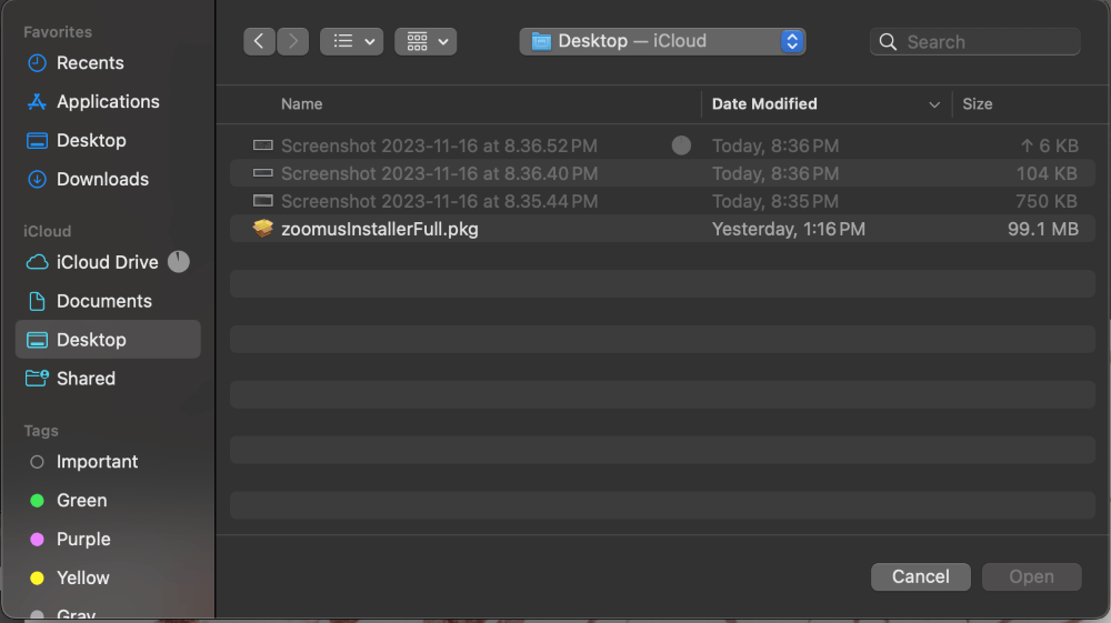 Navigeer naar de map waar u het .pkg-installatiebestand hebt. Kies dat bestand en klik op openen.