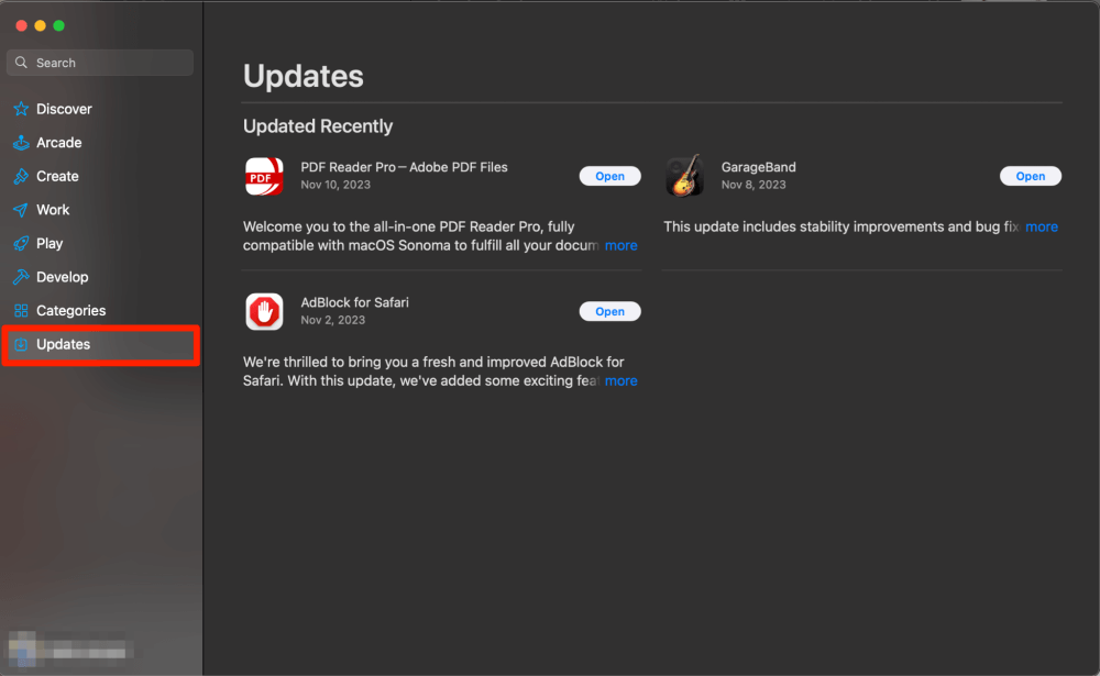 Als de app uit de App Store is gedownload, gebruikt u het tabblad 'Updates' om te controleren of er updates zijn die klaar zijn om te worden geïnstalleerd.