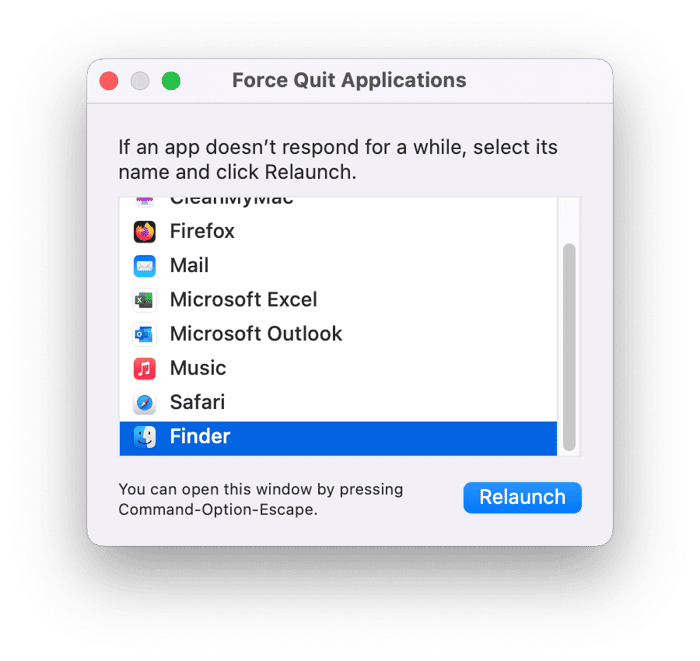 Zoals altijd is het verstandig om met de eenvoudigste oplossing te beginnen. Probeer de Finder geforceerd af te sluiten door op het Apple-menu te klikken, Forceer stop te kiezen, de Finder te selecteren en op Opnieuw starten te klikken.