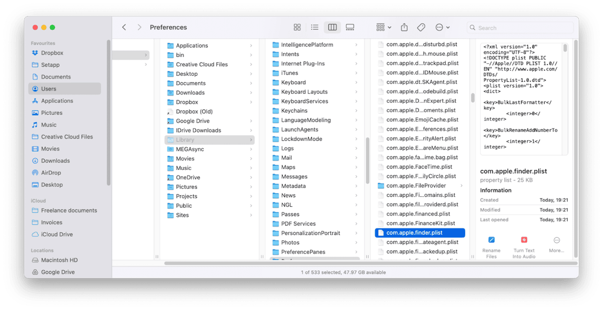 Foutcode 8058 verwijst naar het plist- of voorkeurenbestand van de Finder. In macOS bevatten plist-bestanden details van instellingen voor een applicatie. In het geval van de Finder, aangezien de Finder voor macOS gewoon een andere applicatie is, betekent dit de instellingen die je kiest als je naar Finder > Instellingen gaat. Het bevat informatie zoals welke mappen in de zijbalk van de Finder-vensters moeten staan, welke tags beschikbaar zijn, welke volumes op het bureaublad verschijnen en of u een waarschuwing ziet wanneer u de prullenbak leegmaakt. Als dat plist-bestand beschadigd raakt, kan macOS het niet lezen en kan het dus sommige bewerkingen van de Finder niet uitvoeren. De Finder is een fundamenteel onderdeel van de manier waarop de meesten van ons onze Mac gebruiken, dus elk probleem ermee kan ernstige problemen veroorzaken, zoals het niet kunnen verplaatsen van bestanden tussen mappen of het niet kunnen opslaan van bestanden op het bureaublad.