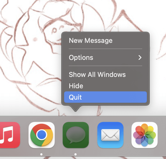 Om toepassingen af te sluiten, eenvoudigklik met de rechtermuisknopop een open applicatie in het dock enklik op stoppen.