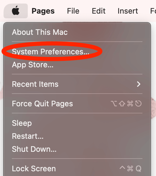 KlikdeAppel-icoonin delinksbovenvan het scherm. Dan,Klik op Systeemvoorkeuren