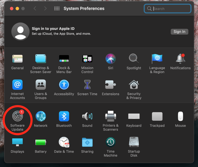 Wanneer deSysteemvoorkeurenvenster verschijnt, selecteer de "Software Update”Icon.