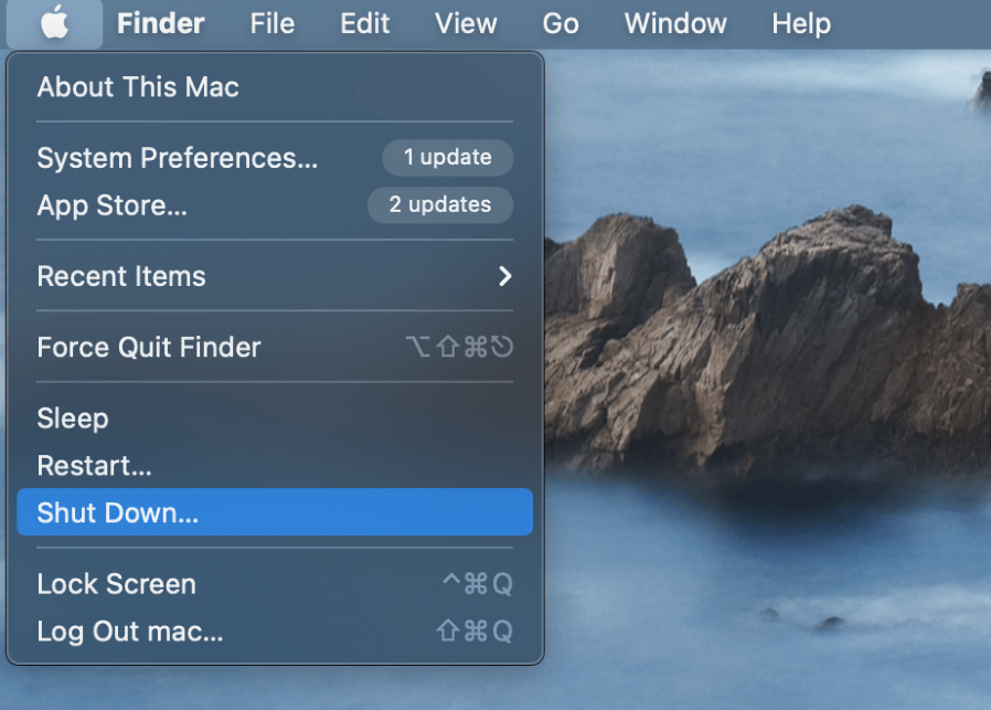 Klik op deAppel iconIn de linkerbovenhoek van het scherm en raakSlot Omlaag.