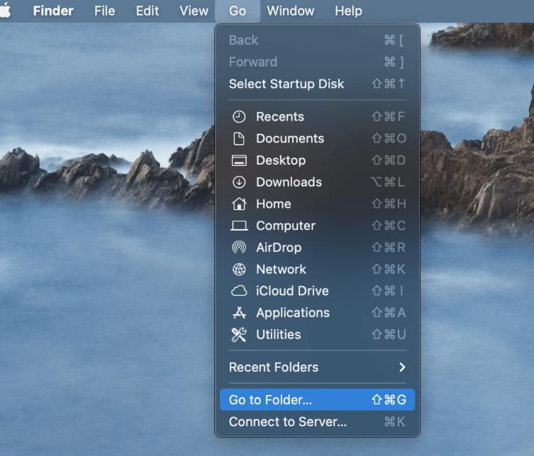 HitGaanVan de Finder -balk aan de bovenkant van uw scherm en selecteerGa naar de map.