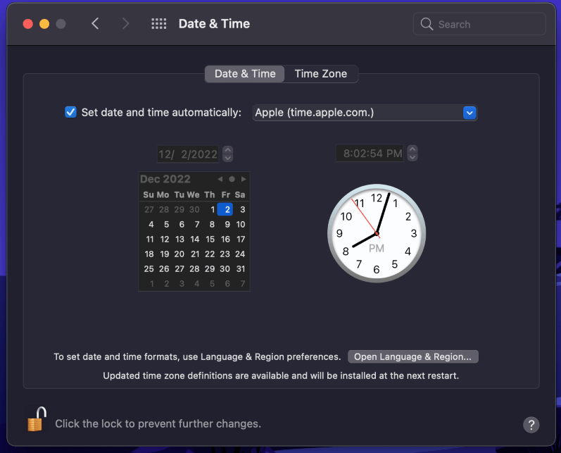 Onjuist ingestelddatum en tijdkan vaak leiden tot onverwachte problemen. Met name kan dit problemen veroorzaken met uw macOS -beveiligingscertificaten. Als gevolg hiervan heeft uw Mac moeite om verbinding te maken met online services, inclusief Steam.