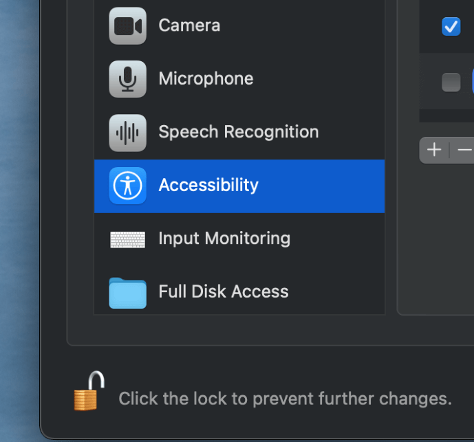 Klik vervolgens op het slot om wijzigingen aan te brengen en voer uwbeheerder wachtwoord. Zich vestigenToegankelijkheidUit de opties in de linker zijbalk. Zorg ervoor dat het selectievakje naast Steam is geselecteerd.